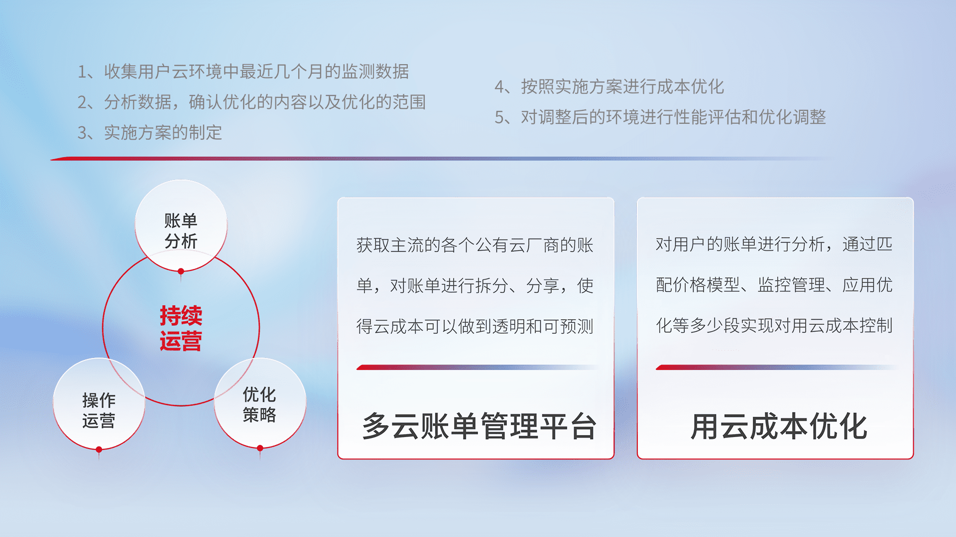 监控业务系统资源开销,,,对资源的消耗精确计量,,实现费用的透明化管理,,,不断提升资源使用率,,调整资源购买方式,,,,降低资源费用成本,,用云成本可预测、、、、用云费用可优化,,,云资源配额有据可依。。